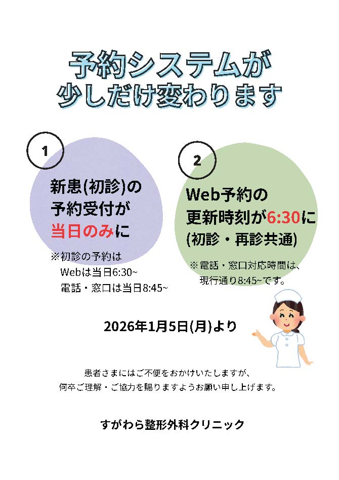 【重要】予約システム一部変更のお知らせ(2026年1月5日より)